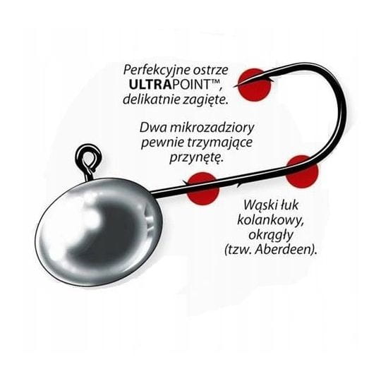Wyrafinowany, delikatny, ale przy tym bardzo sprężysty i mocny drut, dwa mikroskopijne zadziory, umieszczone po przeciwnych stronach trzonka haczyka, kropelkowe, lekko spłaszczone ołowiane dociążenie i specyficzną pozycję oczka zaczepowego uznaliśmy za cztery nienaruszalne cechy mini-główki, znane już z serii Mustad Micro. Szukając kolejnych rozwiązań, które w pewnych warunkach mogłyby jeszcze poprawić skutecznośc, wprowadziliśmy dwie poważne zmiany: nieco bardziej zaokrąglony łuk kolankowy i bardzo istotne zwężenie całego haka. Trzecia, niewielka zmiana, polega na delikatnym podgięciu do środka samej końcówki ostrza haczyka. Efekt? W postaci serii Mustad Micro mieliśmy najlepszą mini-główkę na rynku w ogólnym pojęciu. Dziś mamy dwie najlepsze SPECJALISTYCZNE mini-główki: Micro pozostaje wyborem nr 1 do zbrojenia malutkich ripperków a główka DRAGON X-FINE to absolutny hit, kiedy łowimy okonie na twistery-paproszki!