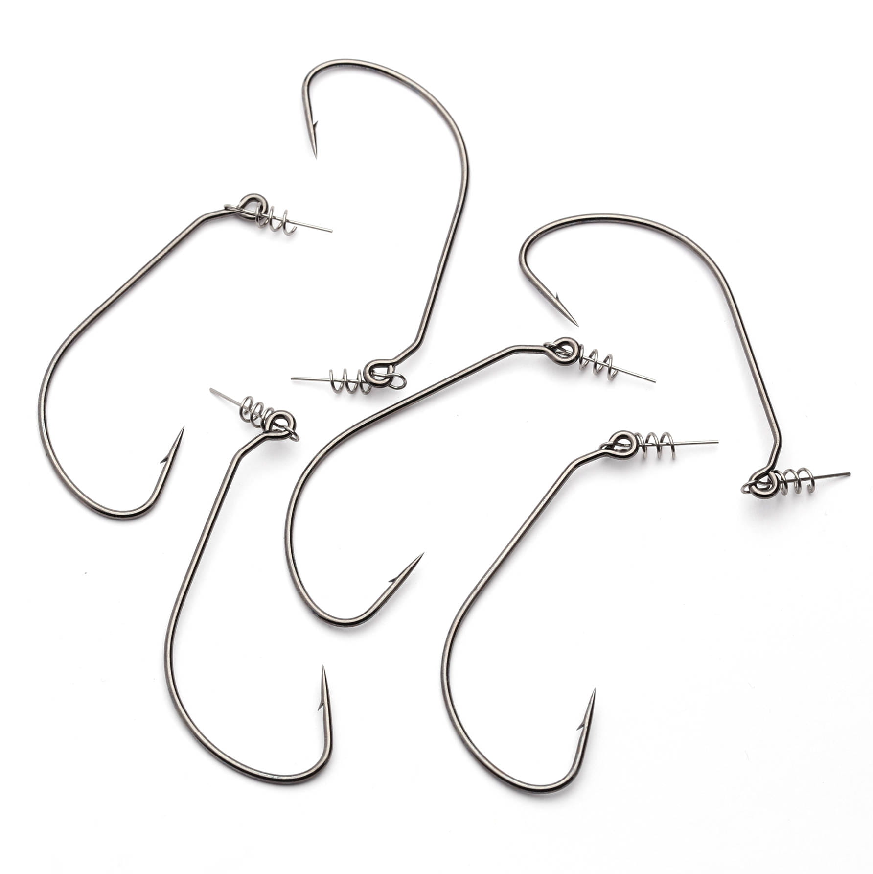Doskonałe haki o średniej wielkości łuku kolankowym, kute ze stali wysokowęglowej z dużym oczkiem i zamocowanym do niego wkrętem.