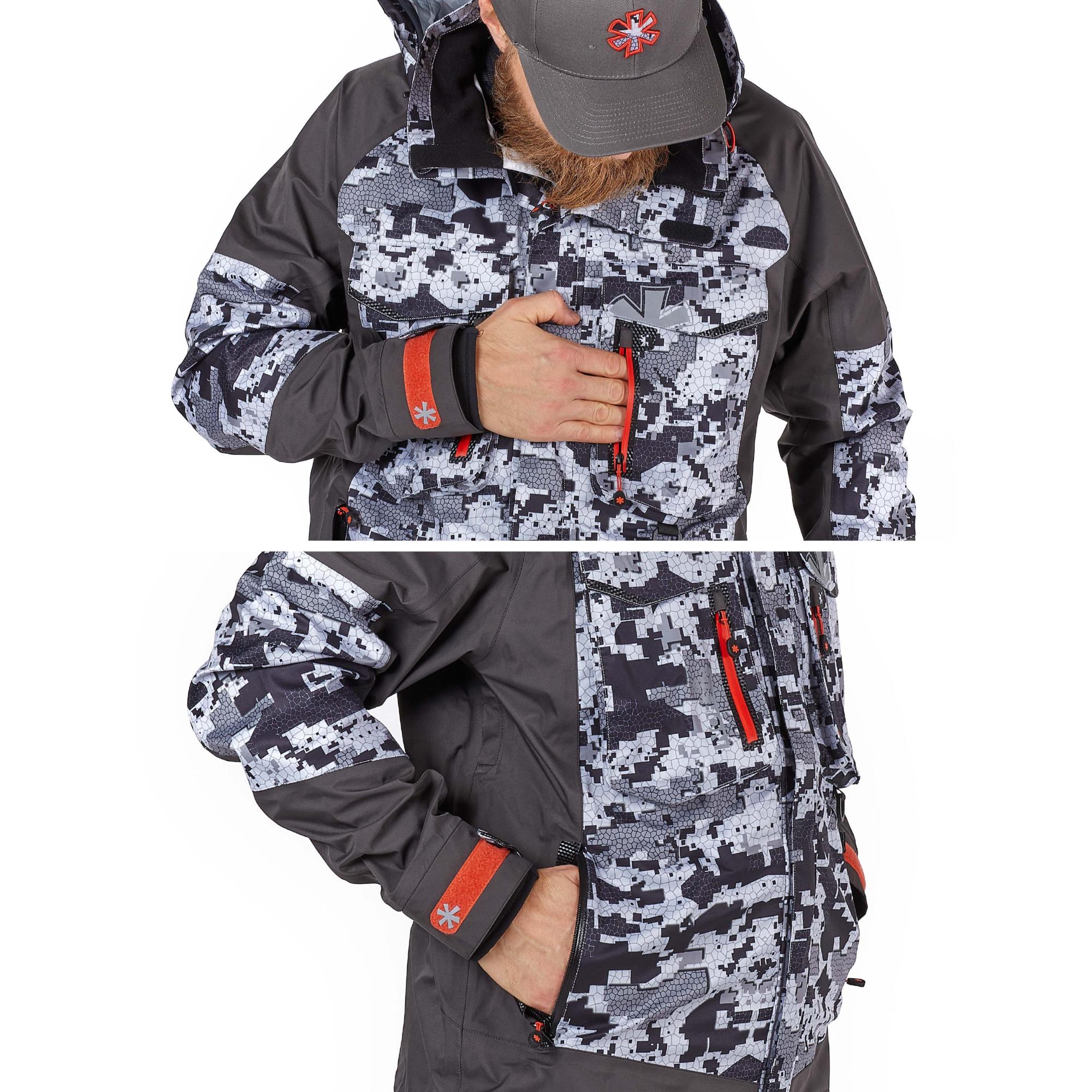 dwie kieszenie na piersi z wodoodpornymi zamkami