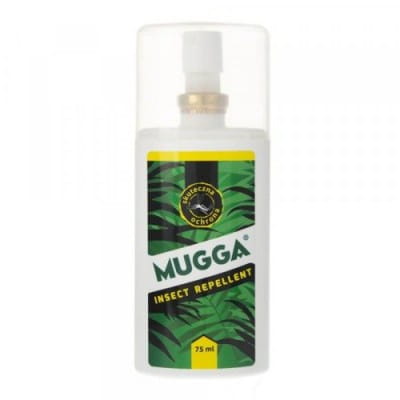 MUGGA w sprayu dla osób dorosłych oraz dzieci od 2 roku życia, o silnym, odstraszającym działaniu przeciwko komarom (europejskim i tropikalnym), muchom, muchom krwiopijnym, meszkom, moskitom, gzom, bąkom, kleszczom i innym insektom. Zabezpiecza przed ukąszeniem przez 6 godzin od zastosowania. Ma przyjemny zapach, można je bezpiecznie stosować na preparaty do opalania i inne kosmetyki.