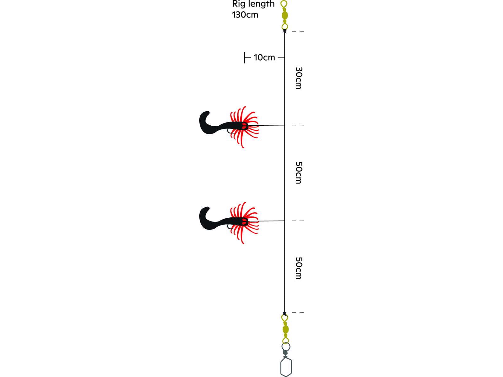 Kiedy łowienie jest wolne - przydziel ten szalony zestaw do służby! Nietypowy wygląd i jego dzikie ruchy powinny załatwić sprawę! Doskonały z przynętą! Wysokiej jakości nylonowa linia Hak zaostrzony chemicznie BLN Cynkowa głowa/silikonowy robak z kręconym ogonem i spódnicą Dorsz/mintaj/czarniak długość 130CM ciężar 26 GB Szydełku #3/0