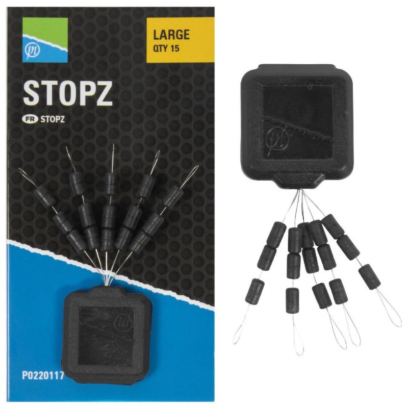 Poręczna żyłka Stopz, która jest dostarczana na linkach i można ją łatwo naciągnąć na linkę, aby zatrzymać obciążone wagglery lub koszyczki. Profil Stopz oznacza, że stoją prosto na Twojej żyłce, tworząc opływowy zestaw. Naciągaj ograniczniki na linkę jeden po drugim, aby uniknąć uszkodzenia drutu. Dostępny w dwóch popularnych rozmiarach
