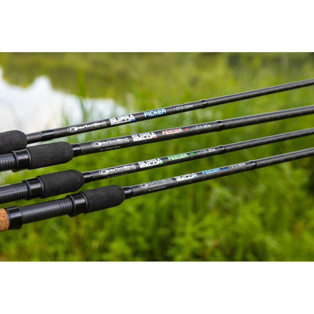 Nowe Supra Pickery oferują fantastyczną jakość i stosunek ceny do jakości. Asortyment jest przeznaczony do wszystkich prac feederowych na krótkim i średnim zasięgu na łowiskach komercyjnych, a także na kanałach, jeziorach, zbiornikach i mniejszych rzekach. W asortymencie znajdują się trzy wędki o różnej długości. 9 stóp do wszystkich połowów na krótkim dystansie, 10 stóp do pracy na średnich dystansach i wersja 11 stóp do łowienia na odległości do 50 metrów.
